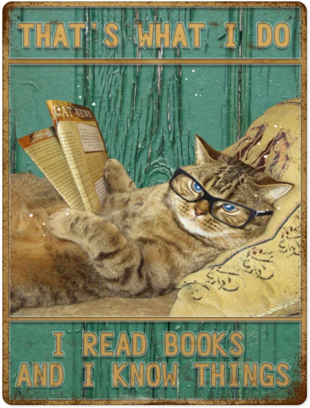 Metal Tin Sign Black Cat Decor For Cat Lovers I Read Books And I Know Things Funny Vintage Metal Sign Bathroom Toilet Inspirational Quote Wall Art Home Decor 12 X18 Reading Cat